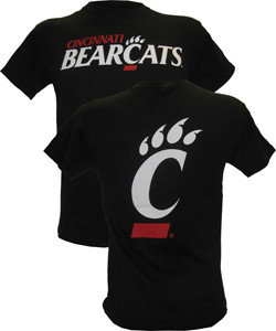 Champion Cincinnati Bearcats Youth Tee with C-Paw, Black features the Cincinnati Bearcats reverse athletic logo on the front and a large Cincinnati Bearcats C-Paw logo on the back.