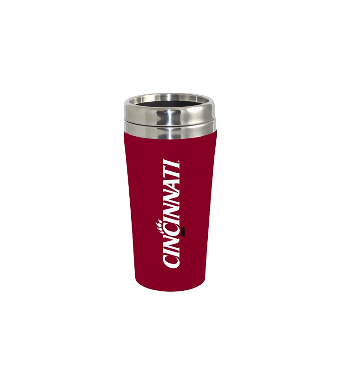 This classic red travel mug is perfect for anyone who is constantly on the go. This stainless steel mug says "Cincinnati" in white and has a slide shut lid to help keep your drink warm longer.